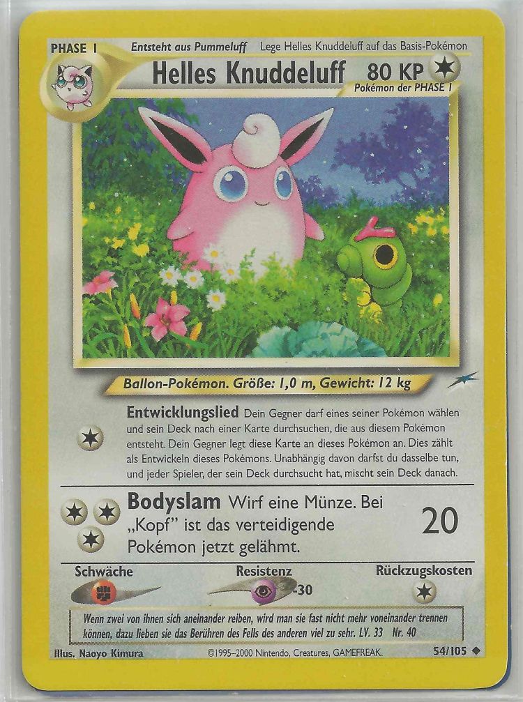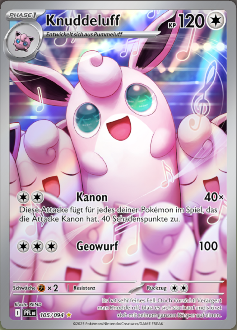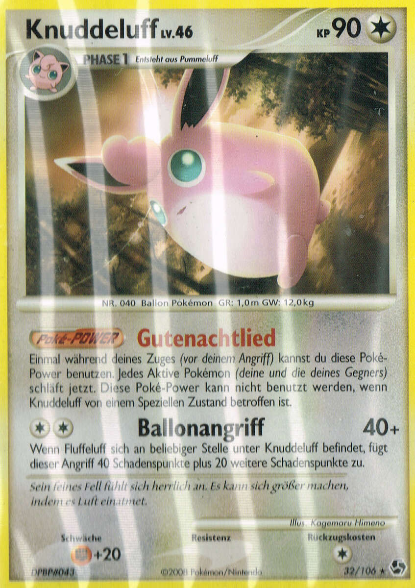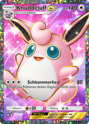 - R KNUDDELUFF hat handtellergroße Augen, die immer mit Tränenflüssigkeit bedeckt sind. Gerät Staub in die Augen dieses POKéMON, so wird dieser sofort ausgespült.
