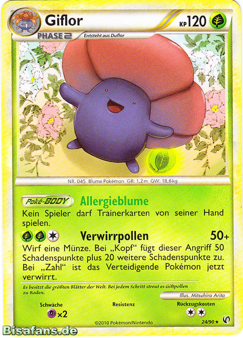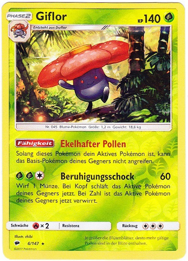 - UM Giflors Pollen sind hochgiftig. Auf so manch eigentümliches Käfer-Pokémon scheinen sie aber eine anziehende Wirkung zu haben.