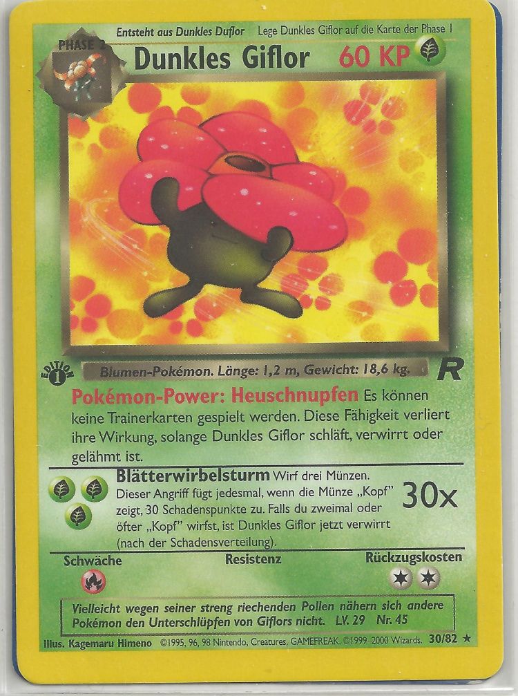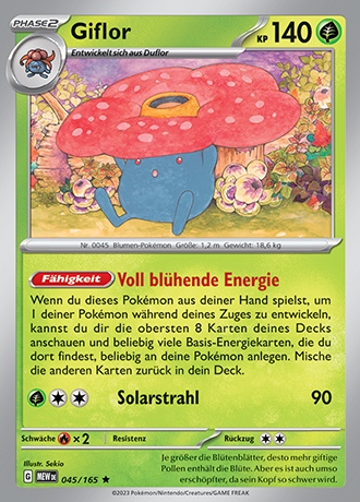 - G Dieses Pokémon kann kraftvoll mit den Blütenblättern flattern, um giftige Pollen freizusetzen.