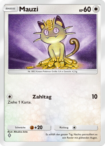 - Im neunten Pokémon-Film "Pokémon Ranger und der Tempel des Meeres" spricht Team Rocket in der deutschsprachigen Version darüber, dass sie mit dem Schatz aus dem Meerestempel ihre Taschen mit Diamanten und Perlen füllen können, woraufhin Mauzi erwidert, dass das gute Namen für Spiele seien.