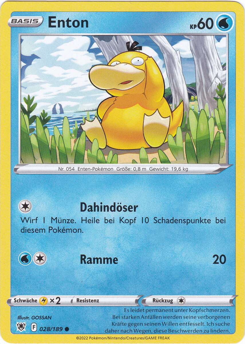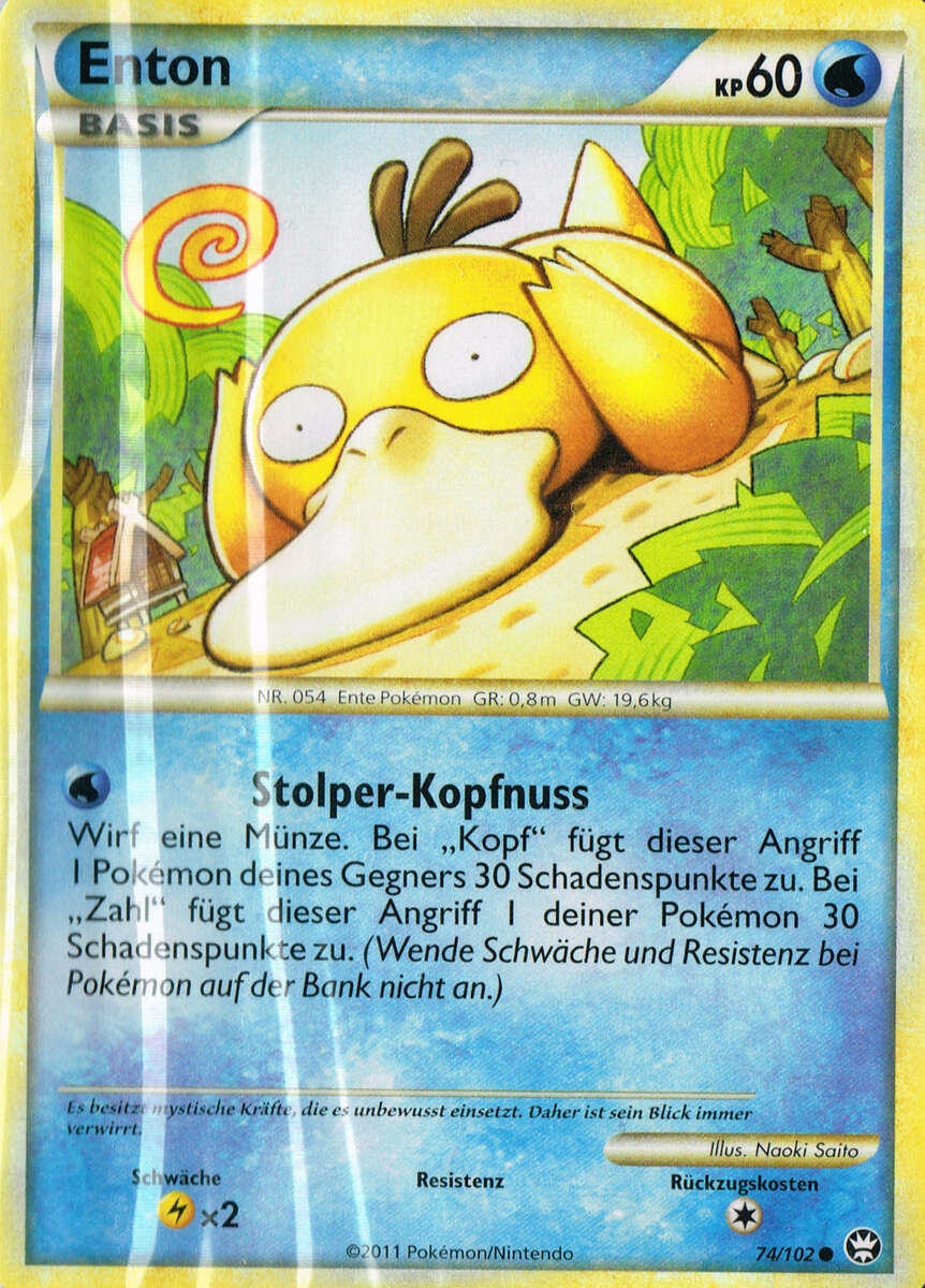 Enton besitzt die Pokédex-Nummer #054 und ist ein Wasser-Pokémon der ersten Generation. Seinen ersten Auftritt in Videospielen hat es in Pokémon Rot & Blau.