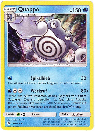 - S Quappo, die aus Alola stammen, sind besonders gut im Brustschwimmen. Viele Kinder lernen Schwimmen, indem sie Quappo nachahmen.