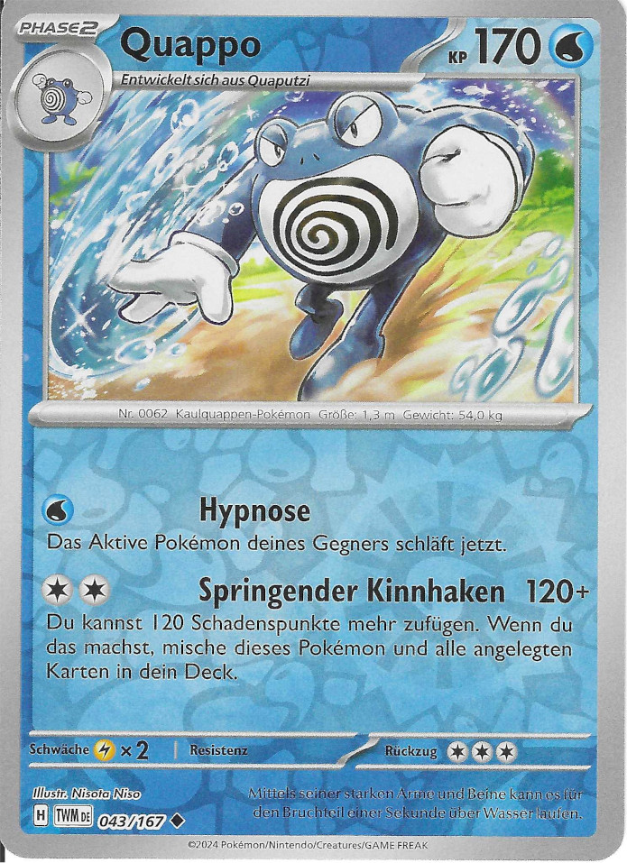 - US Selbst unter den Wasser-Pokémon gilt es als hervorragender Schwimmer. Dennoch hält es sich vorwiegend an Land auf.
