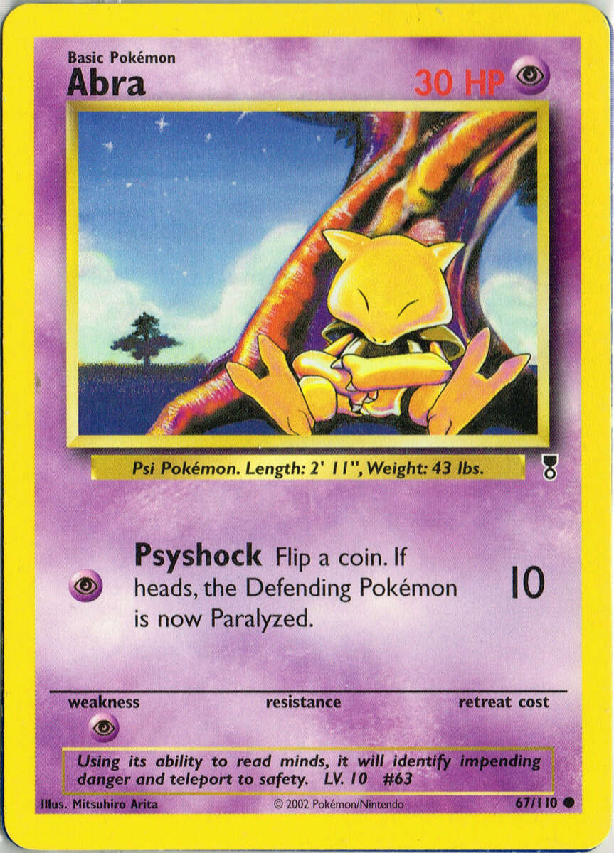 - RB Dieses Pokémon kann Gedanken lesen. Droht ihm Gefahr, so teleportiert es sich in Sicherheit.