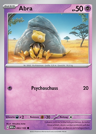 - S ABRA braucht achtzehn Stunden Schlaf pro Tag, sonst verliert es die Fähigkeit, seine telekinetischen Kräfte zu nutzen. ABRA flüchtet mit Hilfe des TELEPORT, schläft dabei aber weiter.