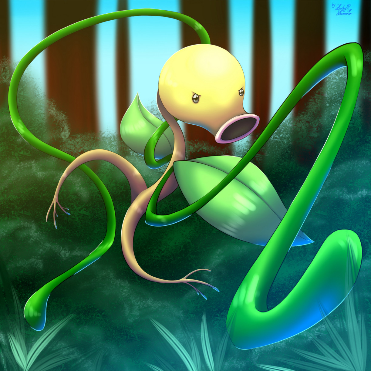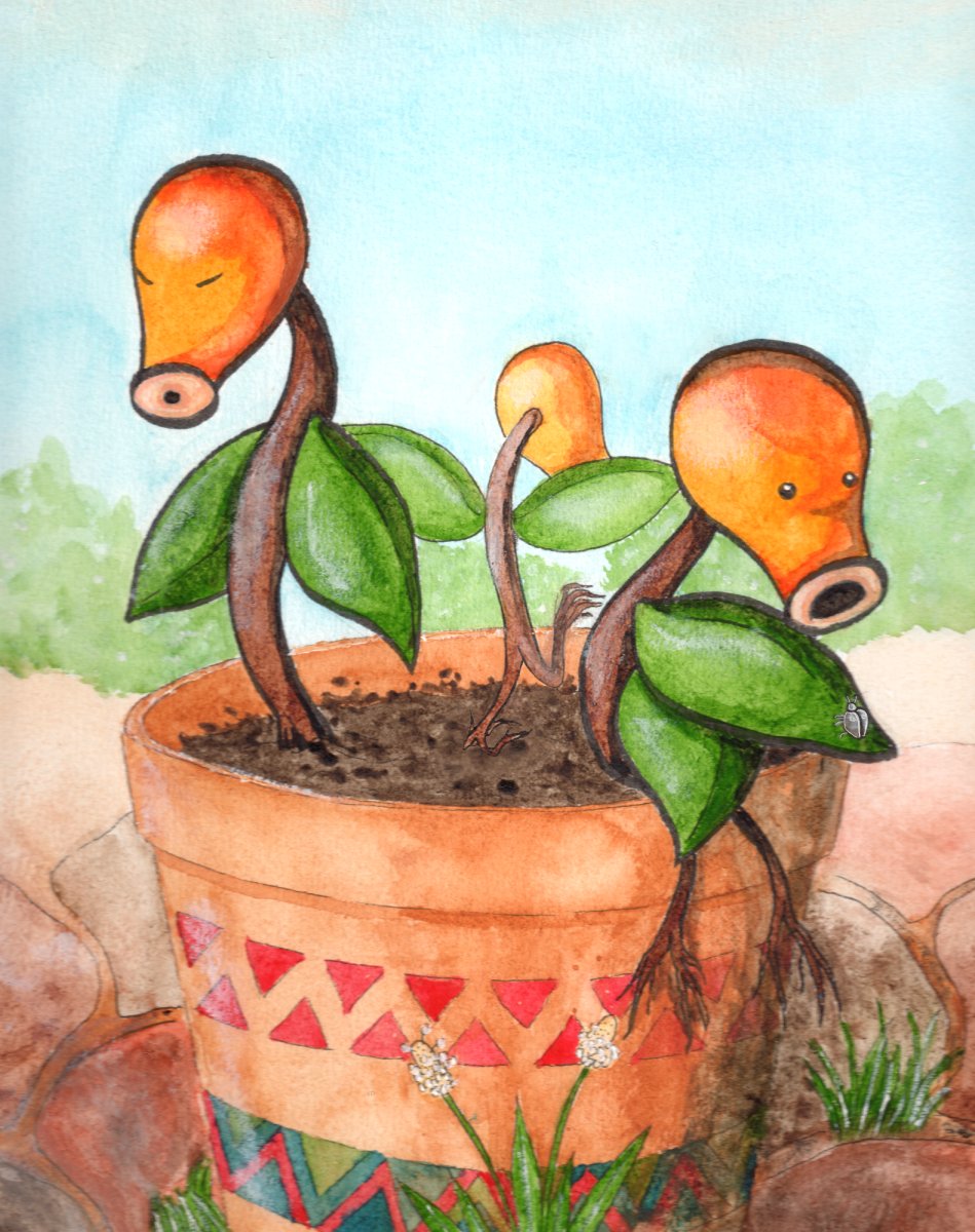 - S Dieses Pokémon ist entfernt mit einer fleischfressenden Pflanze verwandt. Es kann mit seinen Wurzeln wie mit Füßen laufen.