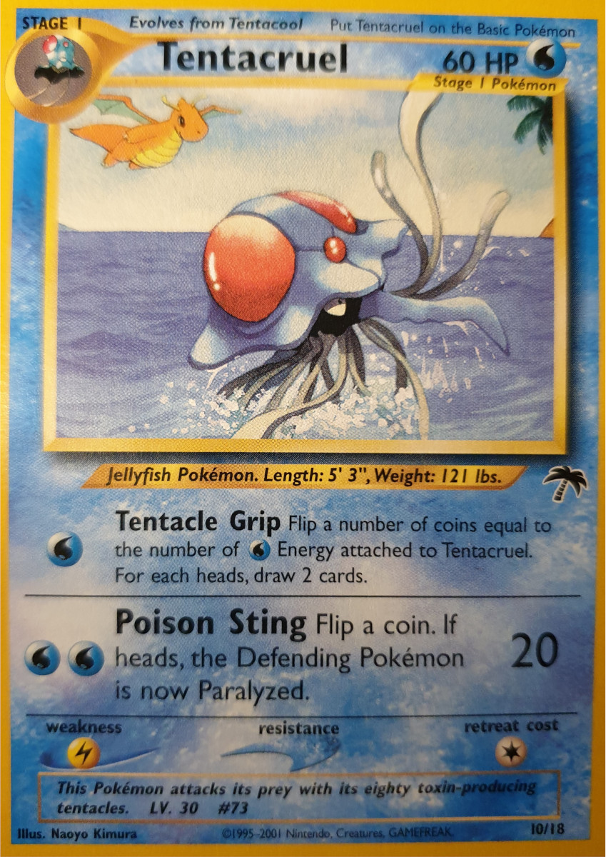 - PLA Es verfügt über 80 Tentakel mit giftigen Enden, die es auf Beutejagd über das normale Maß hinaus dehnen kann. Bei diesem Pokémon ist Vorsicht geboten!