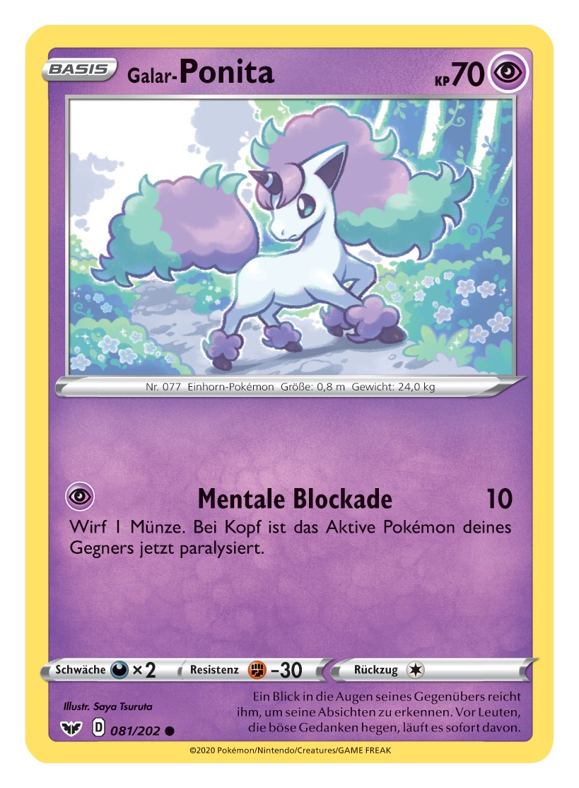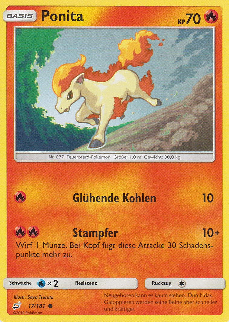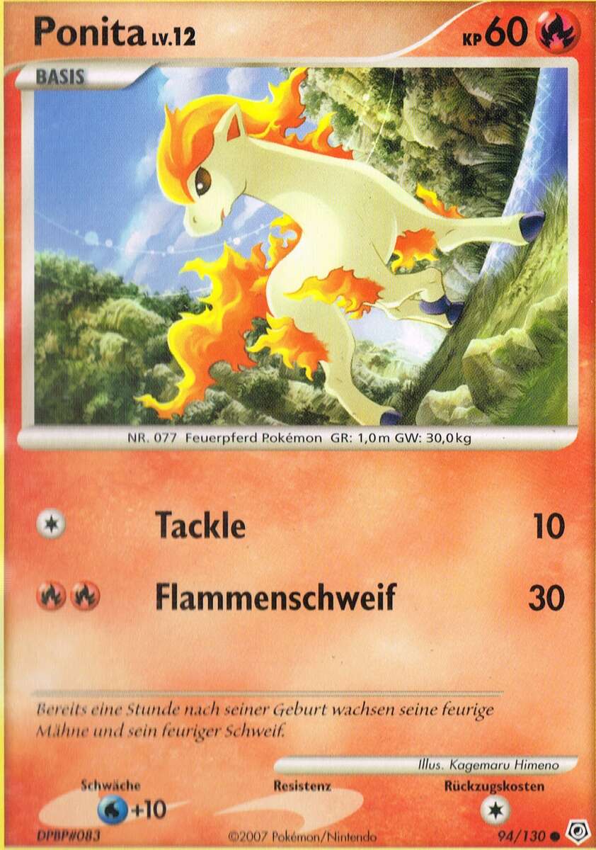 - AS Nach seiner Geburt ist Ponita sehr schwach. Es braucht sehr lange, bis es auf allen Vieren steht. Dieses Pokémon wird stärker, da es bei dem Versuch, mit seinen Eltern Schritt zu halten, immer wieder stolpert und hinfällt.