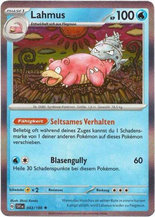 - RB Am Schwanz dieses Pokémon hat sich ein Muschas festgesaugt. Lahmus fungiert für ihn als Wirt.