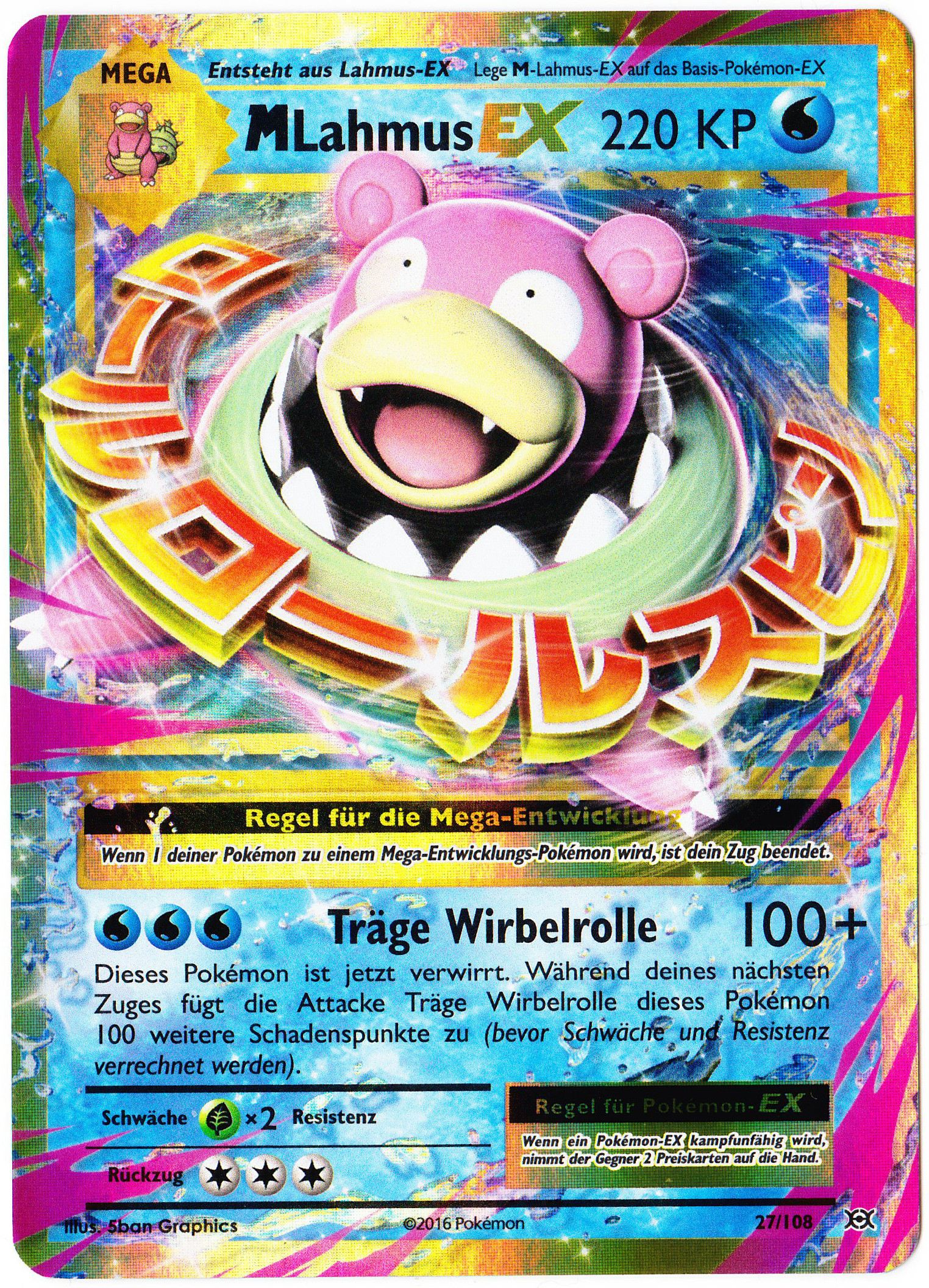 - Eigentlich besitzt Lahmus selbst keine Mega-Entwicklung. Die gesamte Mega-Energie wird von dem Muschas absorbiert, welches sich an Lahmus’ Schwanz festbeißt.