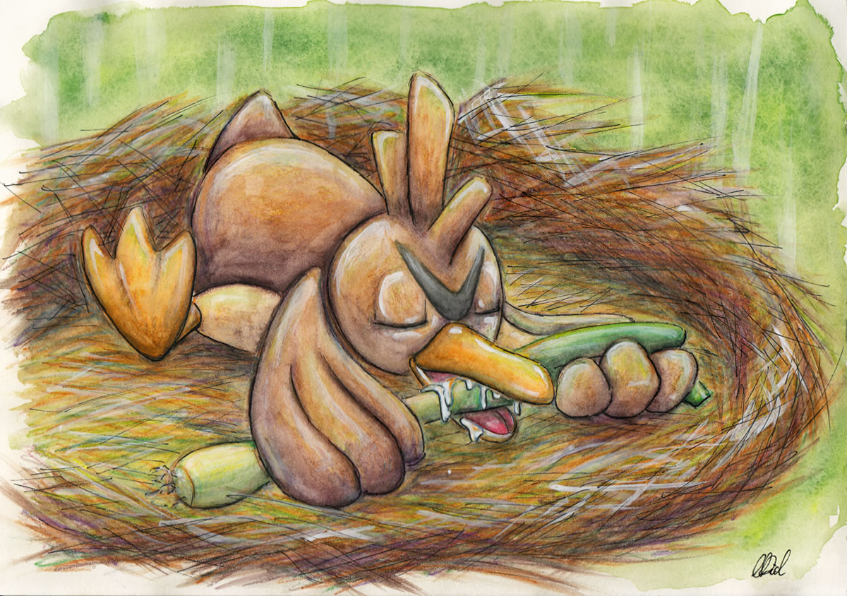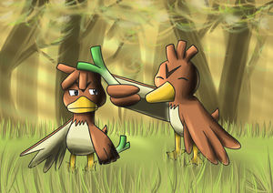 - S Dieses Pokémon trägt ständig eine Stange Lauch bei sich. Es verwendet diese als Waffe oder für sein Nest.