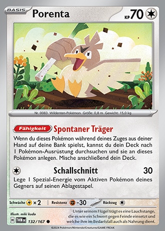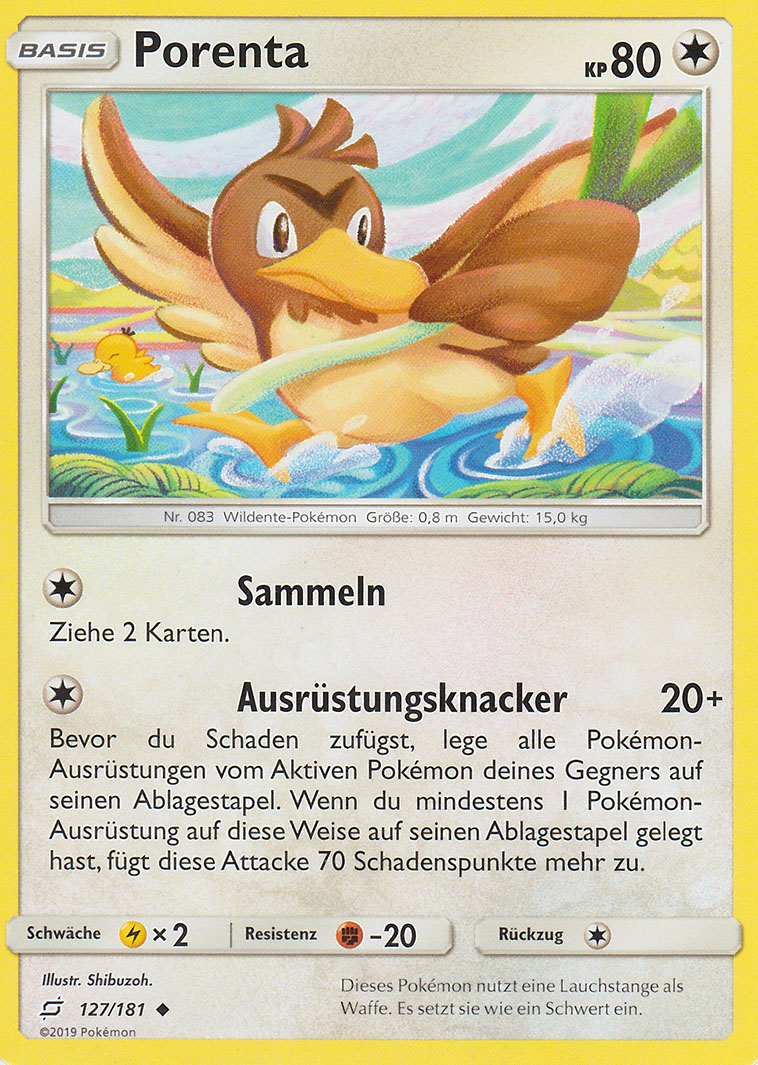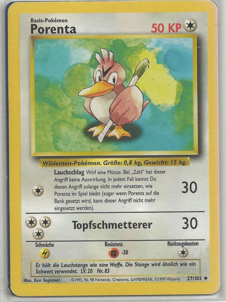 - OR Porenta trifft man immer mit einer Lauchstange an. Es gibt gute und schlechte Stangen. Dieses Pokémon kämpft mit Hilfe seiner Stange gegen seine Gegner.
