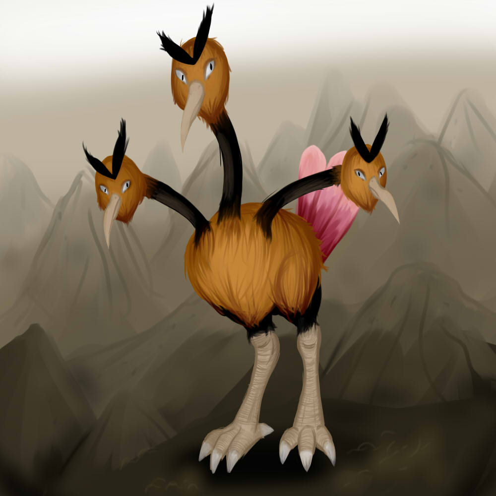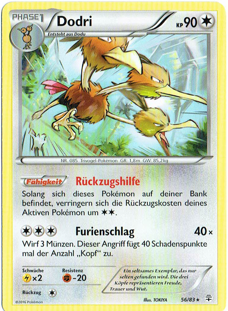 - K Diesem Pokémon sind drei Lungen und drei Herzen gewachsen. Es ist langsamer als Dodu, hat beim Rennen aber eine hohe Ausdauer.