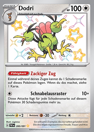 - G Dieses Pokémon entwickelt sich aus Dodu. Es erreicht beim Laufen sehr hohe Geschwindigkeiten.