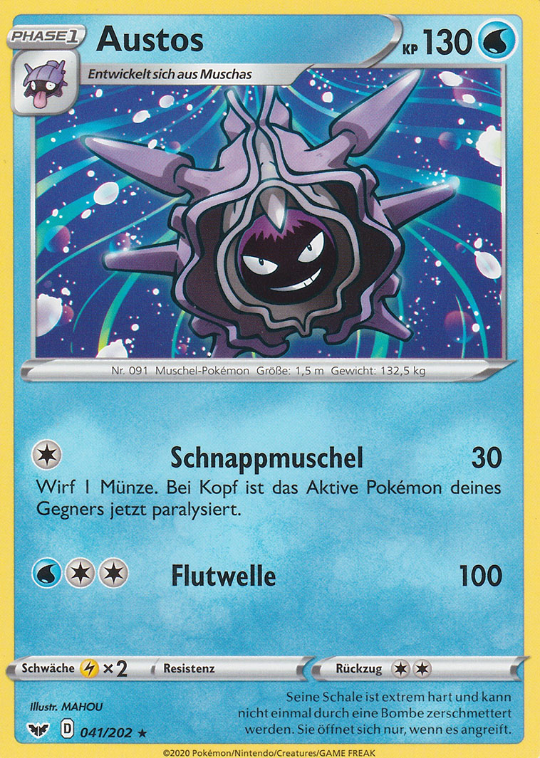 - S Die Schale dieses Pokémon ist so hart, dass sie selbst einer Explosion standhält. Niemand weiß, wie AUSTOS unter der Schale aussieht.