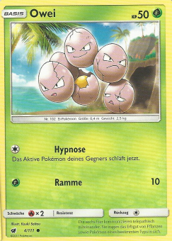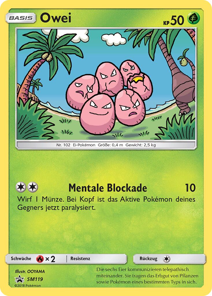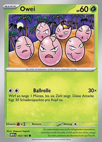 - GO Dieses Pokémon besteht aus sechs Eiern, die ein engmaschiges Netz bilden. Die sechs Eier ziehen sich gegenseitig an und drehen sich. Wenn die Eier Risse bekommen, steht Owei kurz vor seiner Entwicklung.