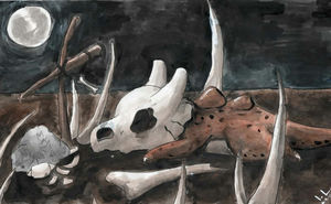 - S Es trägt immer den Schädel seiner verstorbenen Mutter. Darum weiß niemand, wie sein Gesicht aussieht.