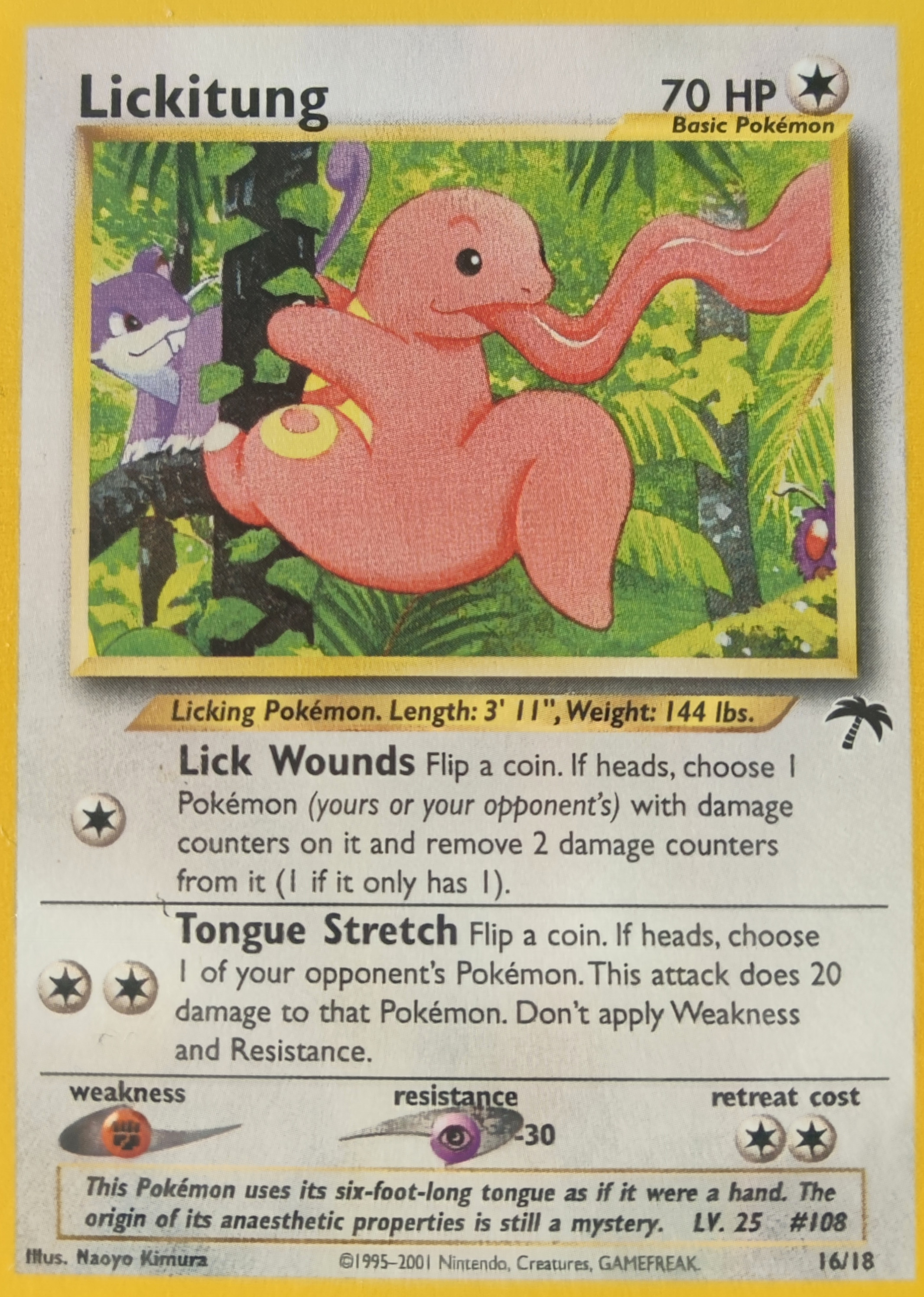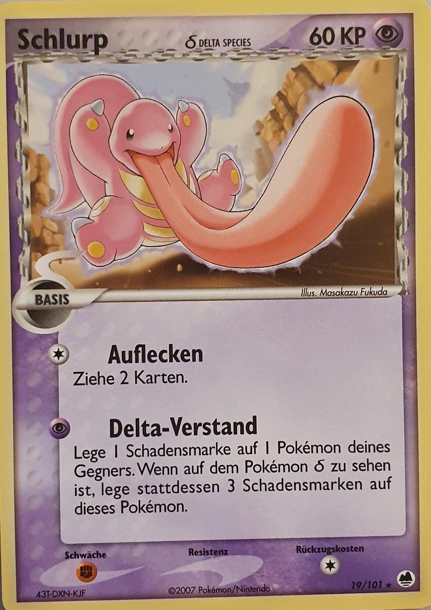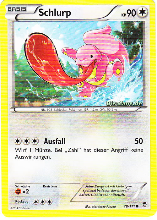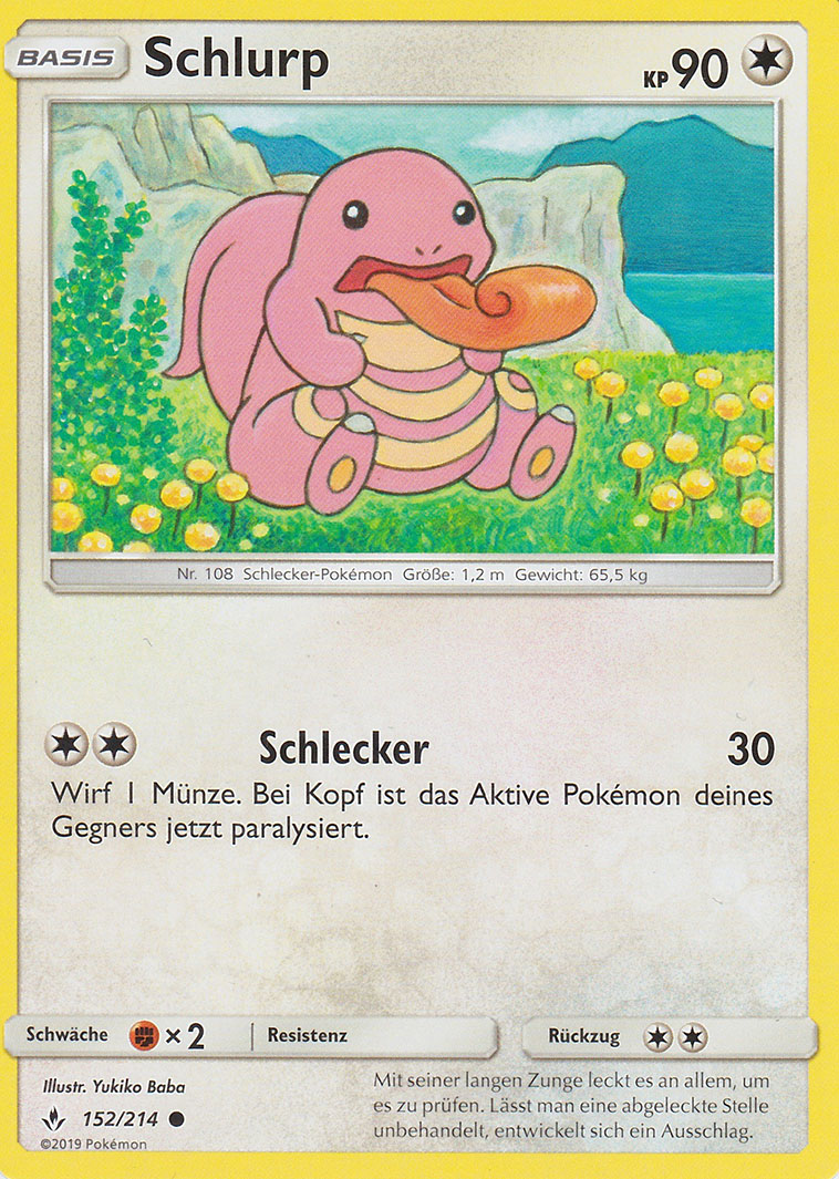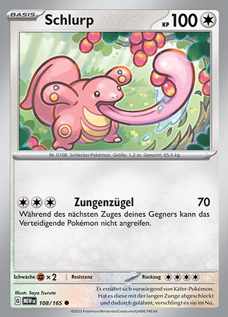 - S Die Zunge dieses Pokémon ist doppelt so lang wie sein Körper. Sie ist äußerst beweglich und kann Gegner im Kampf paralysieren.