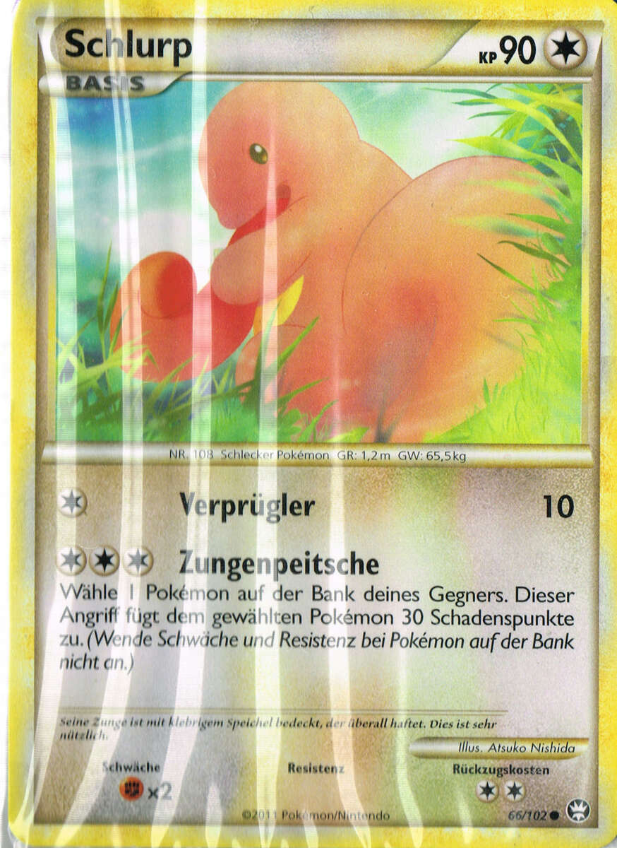 - Je nachdem, welchen Pokédexeintrag man liest, variiert die Länge von Schlurps Zunge zwischen 1m und 2,40m.