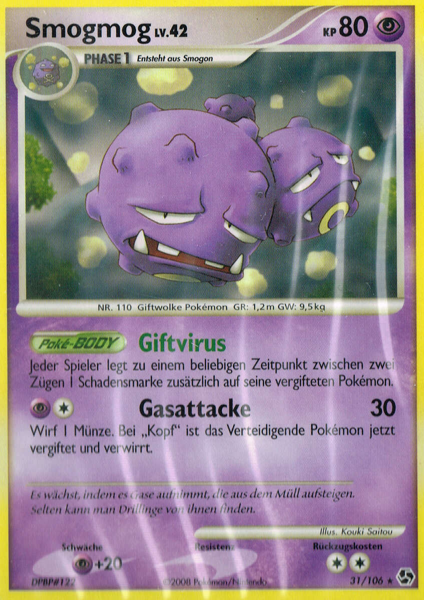 - Smogon und Smogmog sallten in der japanischen Verslonursprünglich die Namen NY und LA erhalten, elne scherzhäfte Ansrielunq auf die besonders smogbelasteten Metropolen New York und Los Angeles.