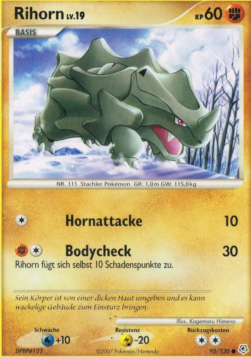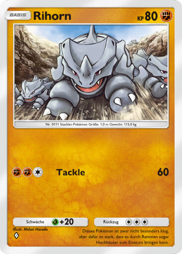 - SHRI Dieses Pokémon ist zwar nicht besonders klug, aber dafür so stark, dass es durch Rammen sogar Hochhäuser zum Einsturz bringen kann.