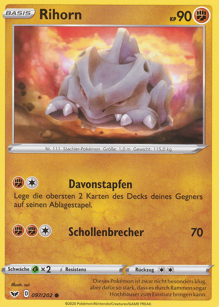 - SW Dieses Pokémon ist zwar nicht besonders klug, aber dafür so stark, dass es durch Rammen sogar Hochhäuser zum Einsturz bringen kann.