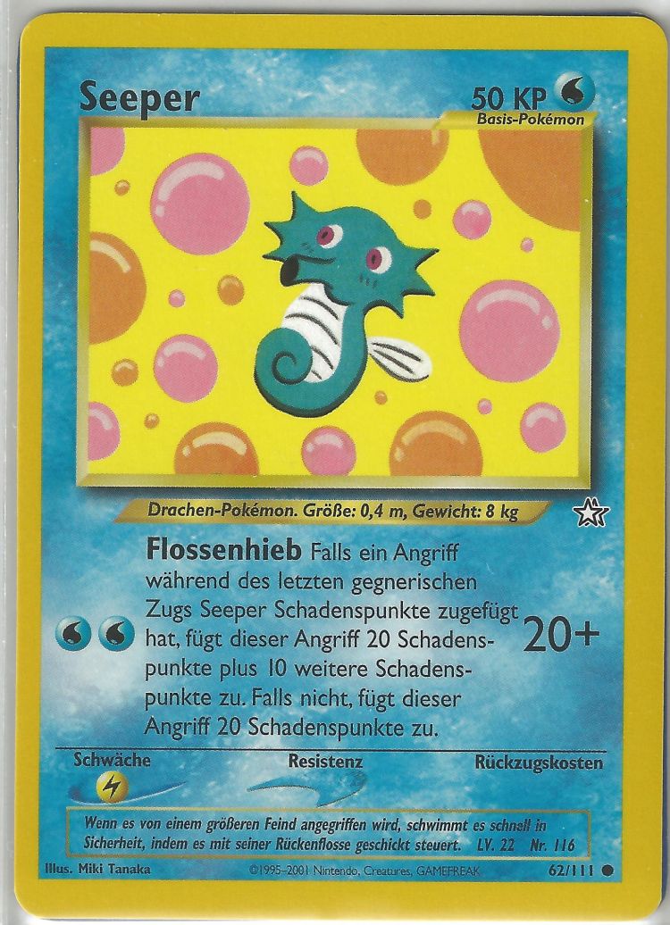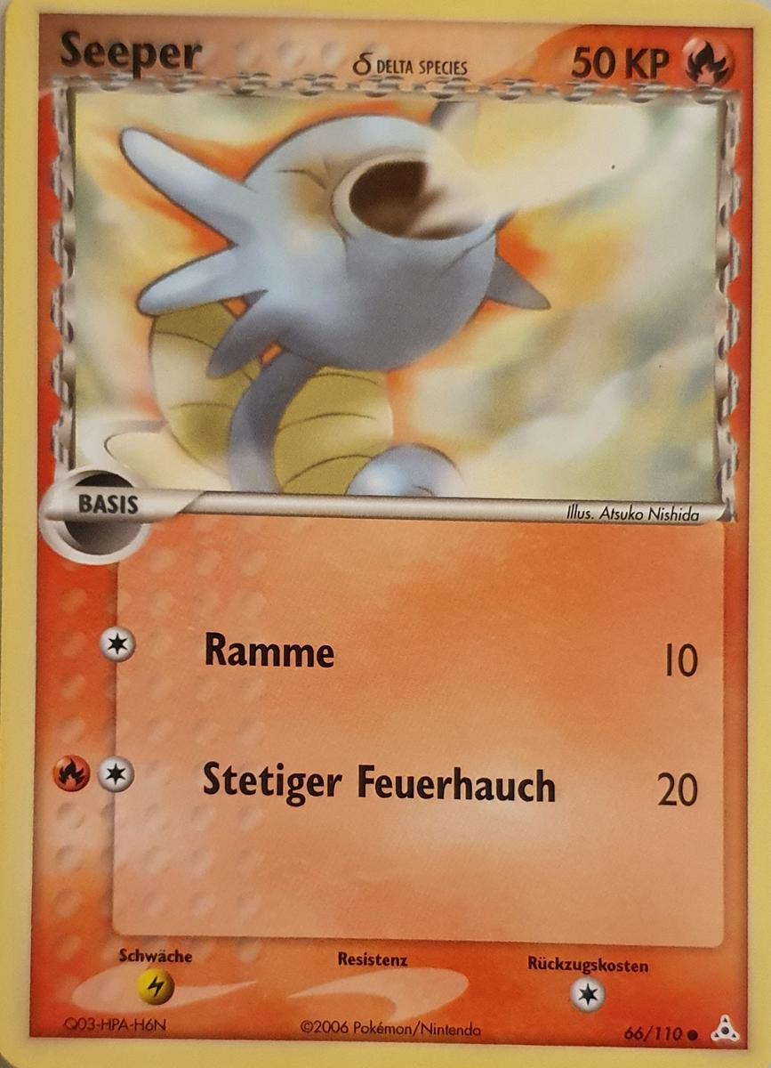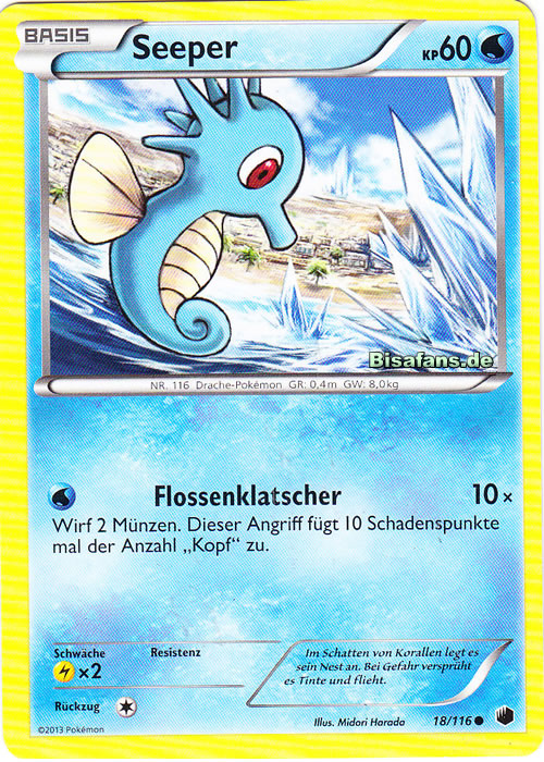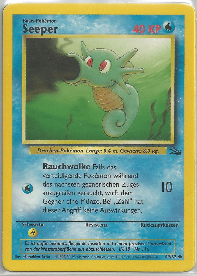 - AS Wenn Seeper Gefahr wittert, versprüht es reflexartig eine tiefschwarze Tinte aus seinem Mund und ergreift die Flucht. Dieses Pokémon kann schwimmen, indem es geschickt mit der Flosse auf seinem Rücken schlägt.