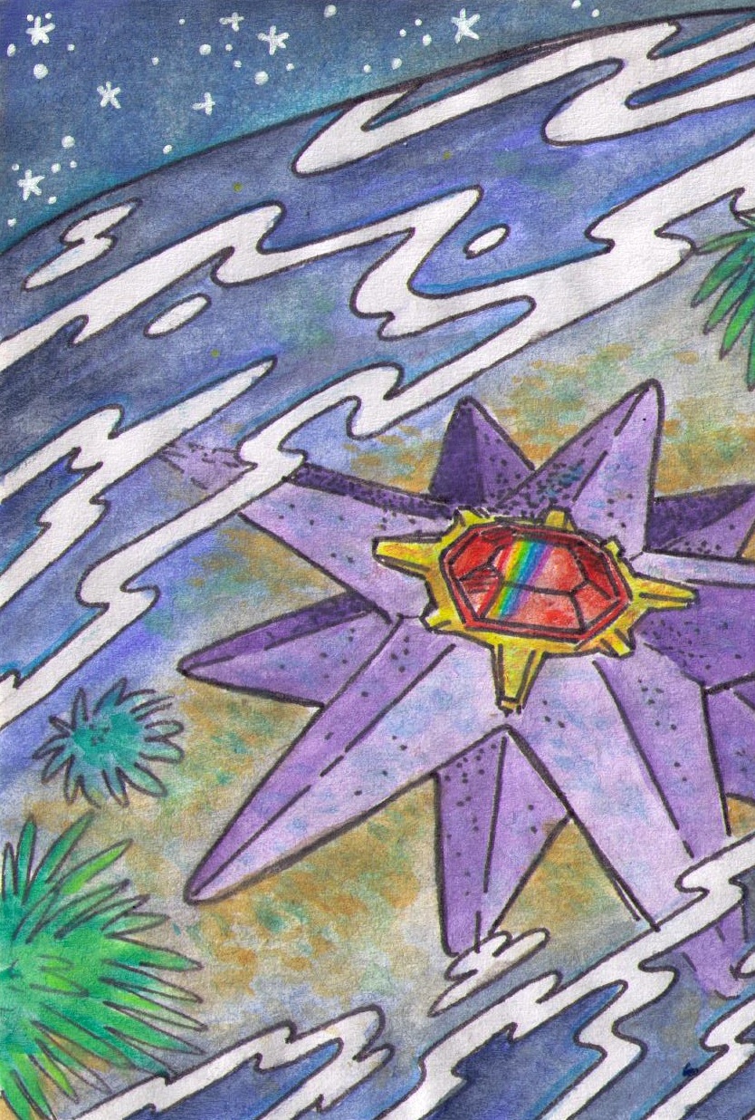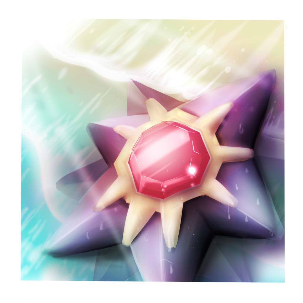 - OR Starmies Mittelteil, sein Kern, leuchtet in sieben Farben. Aufgrund dieser Eigenschaft wird es auch „Juwel des Meeres“ genannt.