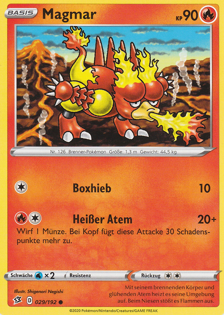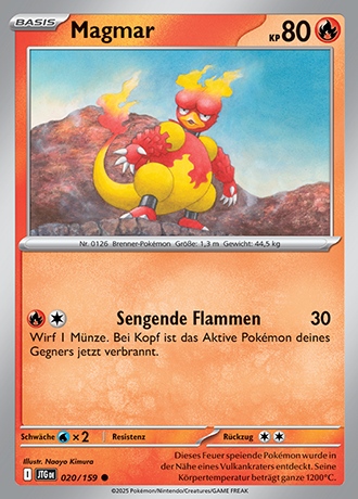 - G Dieses Pokémon entstammt einem aktiven Vulkan. Ganz in Flammen gehüllt gleicht es einem Feuerball.
