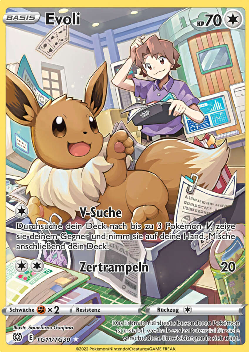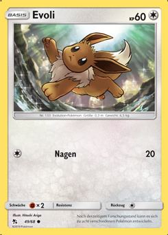 Auch wenn Evoli mit Evolium Z primär vor dem Erscheinen der Pokémon-Bank beliebt war, so ist die sogenannte Eeveepass-Strategie immer noch legitim. Diese Strategie beschreibt das Einsetzen der Z-Attacke Evolis "Macht der Neun" und das Weitergeben der geboosteten Werte durch Stafette. Da für diese Strategie die Attacke Zuflucht, welche die Z-Attacke Evolis als einzige Attacke auslöst, ist diese ebenso wie Stafette gesetzt. Der Delegator ist ein netter Zusatz, da man diesen je nach Situation ebenso an den Teampartner per Stafette weitergeben kann, während Kraftvorrat am Ende nur dazu da ist, irgendwie auch Schaden machen zu können, sobald die Teampartner allesamt gestorben sind. Die Attacke "Macht der Neun" erhöht den Angriff, die Verteidigung, den Spezial-Angriff, die Spezial-Verteidigung und die Initiative um je zwei Stufen - sollten diese Wertesteigerungen durch Stafette an einen Teampartner wie Mega-Brutalanda weitergegeben werden, können viele Gegner dagegen oft nicht sonderlich viel machen, allerdings verliert diese Strategie aufgrund der verstärkten Nutzung von Verhöhner und einigen anderen Aspekten vermehrt an Popularität.
