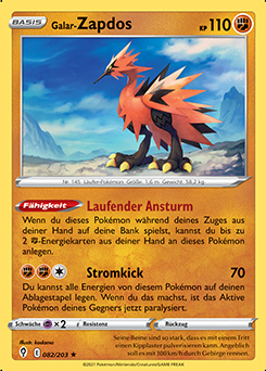 - BG Ein legendäres VOGEL-POKéMON, das im Sturzflug aus den Wolken bricht und Blitze schleudert.