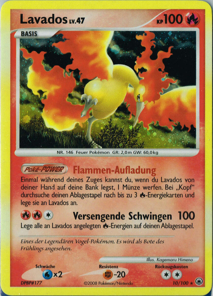 - RB Dieses Pokémon ist der legendäre Feuervogel. Sein Flügelschlag entfacht ein helles Feuermeer.
