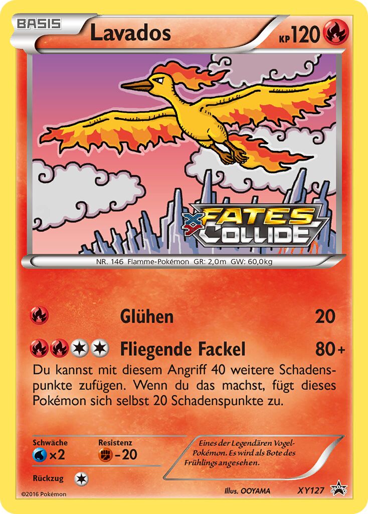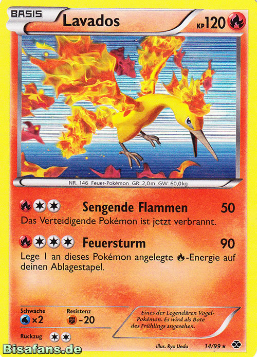 - X Dieses Pokémon ist der Legendäre Feuervogel. Sein Flügelschlag entfacht ein helles Feuermeer.