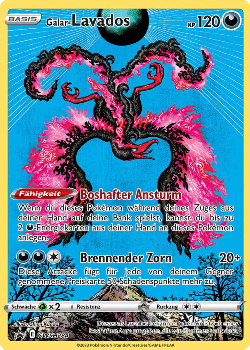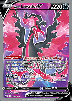 - S LAVADOS ist ein legendäres Vogel-POKéMON, das Feuer manipulieren kann. Wird es verletzt, taucht es seinen Körper in das Magma eines Vulkans, um sich selbst zu heilen.