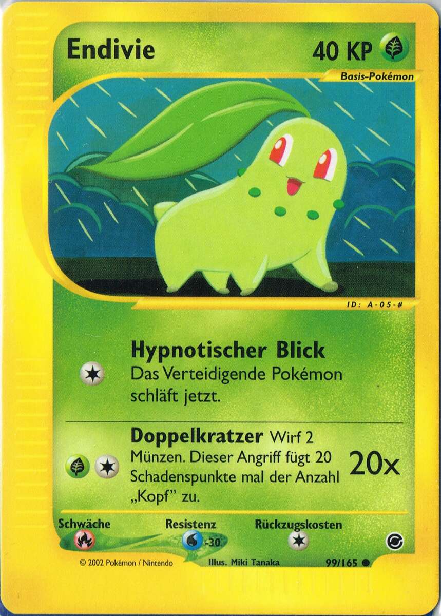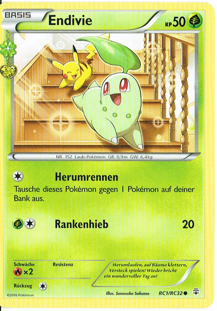 - RSS Im Kampf wedelt ENDIVIE mit seinem Blatt, um den Feind fern zu halten. Das Blatt verströmt einen tollen Duft, der PKMN beruhigt und eine nette Atmosphäre schafft.