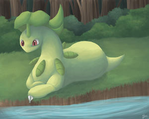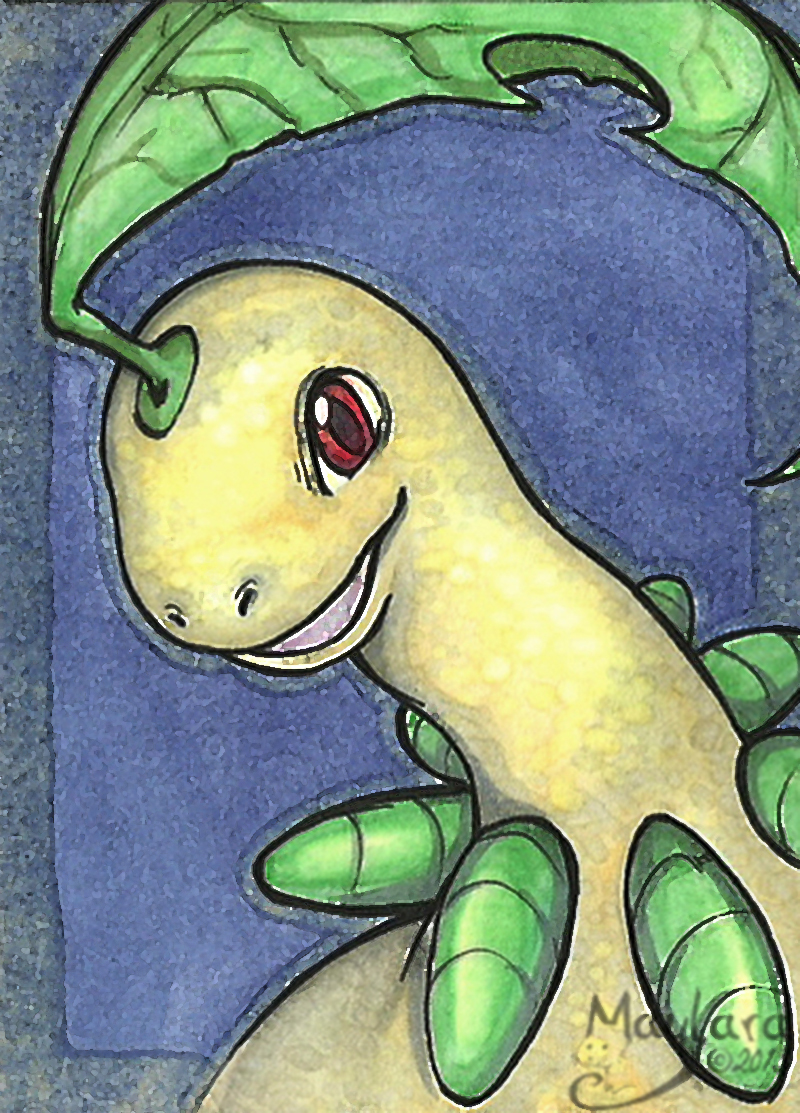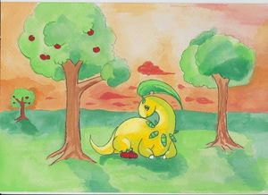 - ORAS Lorblatts Nacken ist mit zusammengerollten Blättern behangen. In jedem Blatt befindet sich ein kleiner Trieb eines Baumes. Der Duft dieses Triebes bringt Menschen auf Trab.