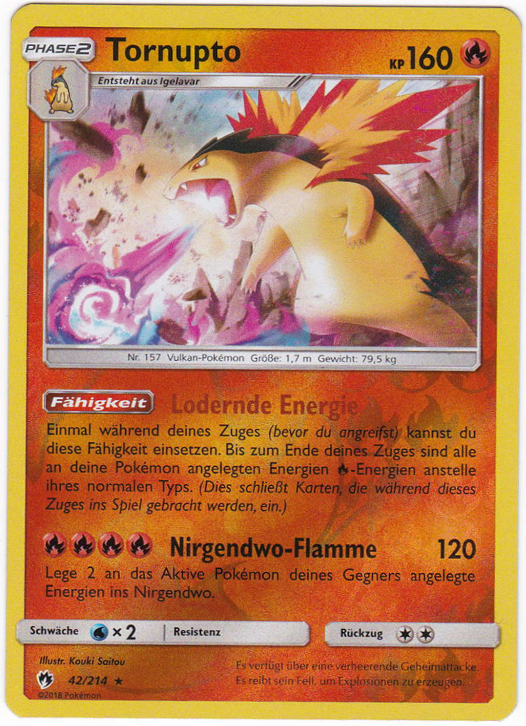 - GO Tornupto versteckt sich hinter einem flimmernden Hitzeschild, den es mithilfe seiner heißen Flammen erzeugt. Dieses Pokémon erzeugt Explosionen, die alles in Schut und Asche legen.
