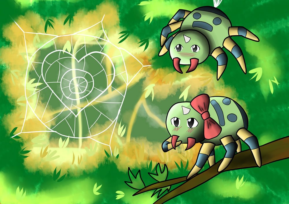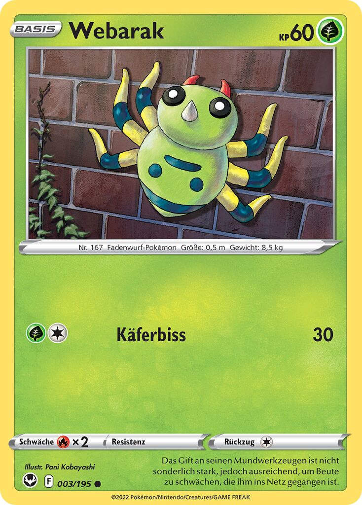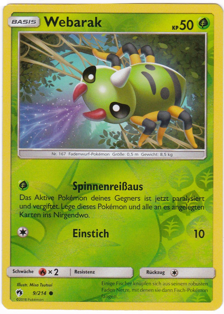 - S Ein sehr geduldiges Pokémon, das besonders gern Wommel frisst. Es wartet beharrlich darauf, dass sich welche in seinem Netz verfangen.