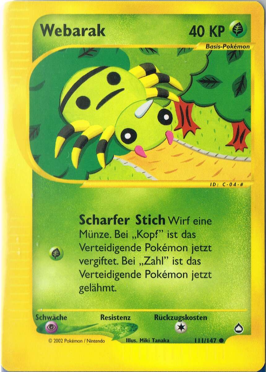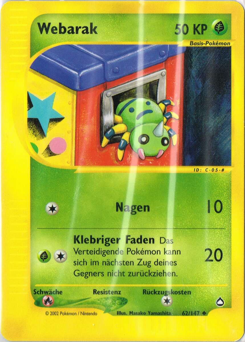 - GO Das von Webarak gesponnene Netz ist sein zweites Nervensystem. Dieses Pokémon kann anhand der feinen Vibrationen der Netzfäden bestimmen, welche Art von Beute sich darauf befindet.