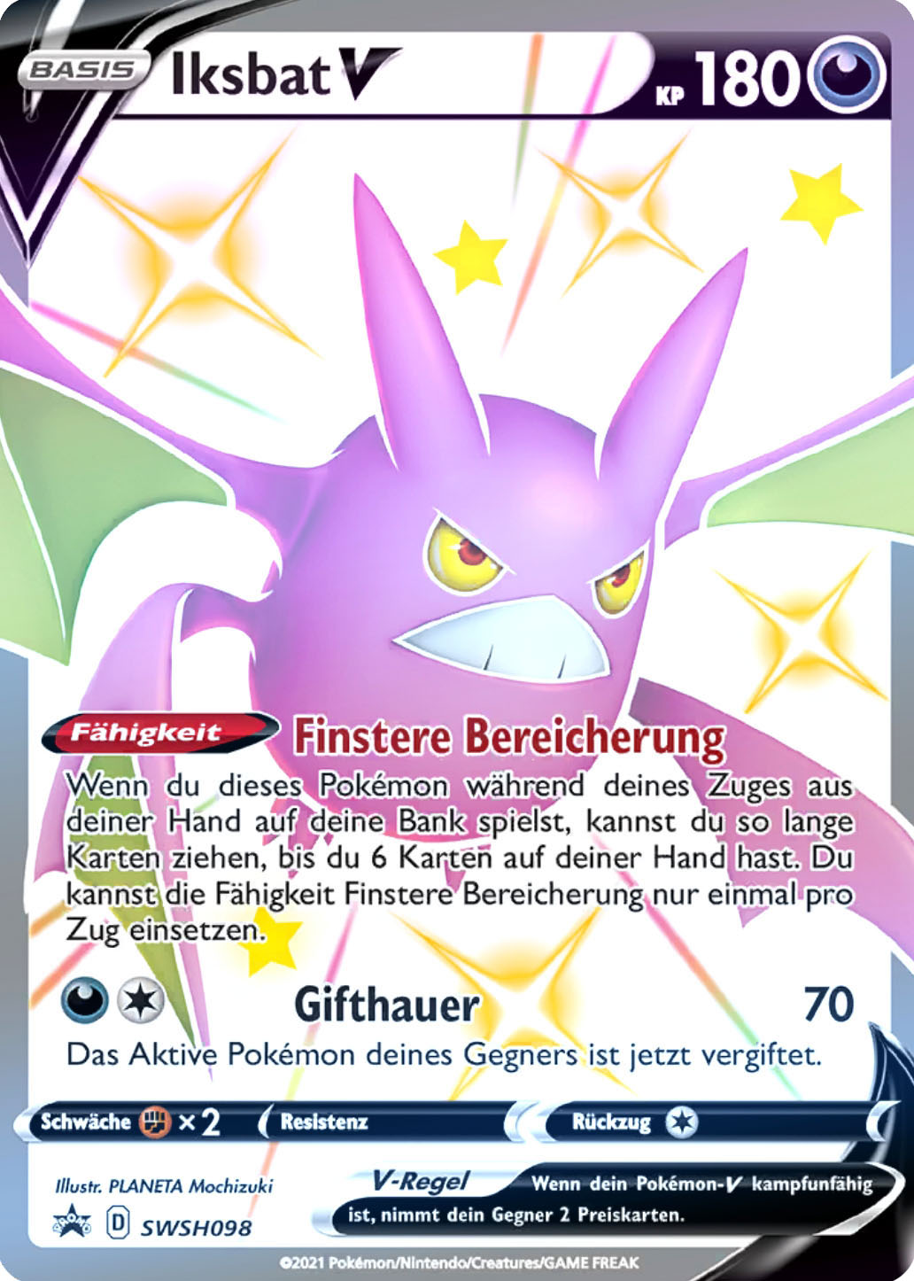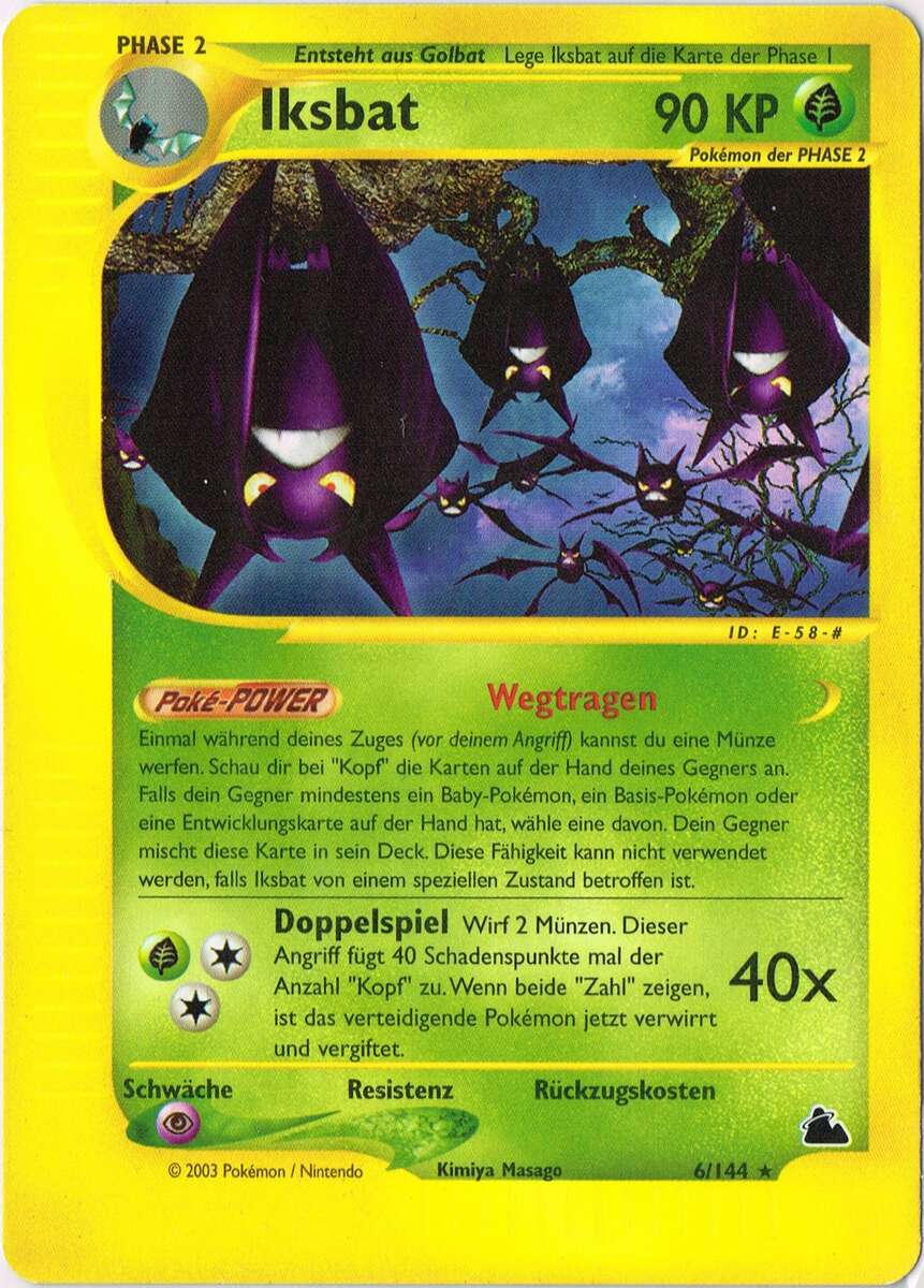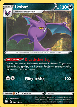 - S IKSBATs Flügelschlag ist so leise, dass die Beute lautlos überrascht wird. Dieses POKéMON ruht sich aus, indem es sich mit seinen Hinterbeinen, die ihm als Flügel dienen, an einen Ast hängt.