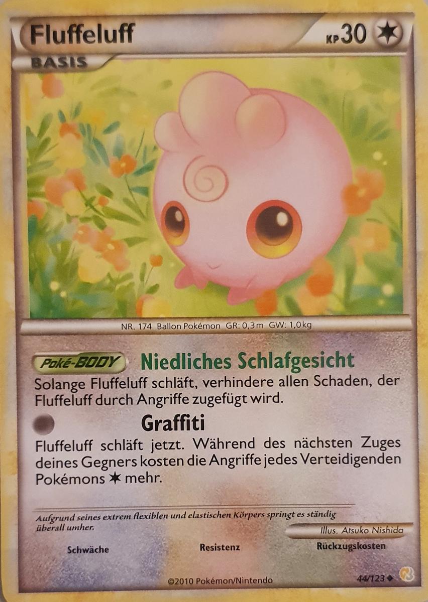 - OR Fluffeluffs Stimmbänder sind noch nicht voll entwickelt. Wenn es zu viel singt, schmerzt ihm die Kehle. Dieses Pokémon gurgelt mit Süßwasser aus einem sauberen Fluss.