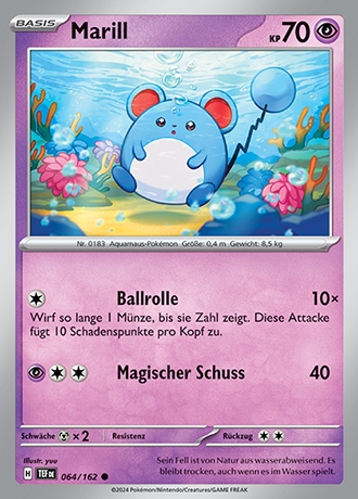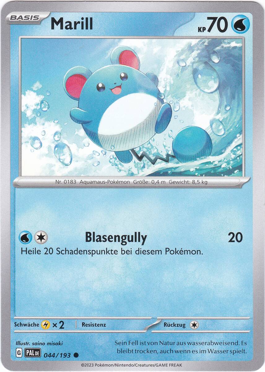 - DPP Das ölgefüllte Ende seines Schweifs schwimmt auf dem Wasser. Das rettet MARILL vor dem Ertrinken.
