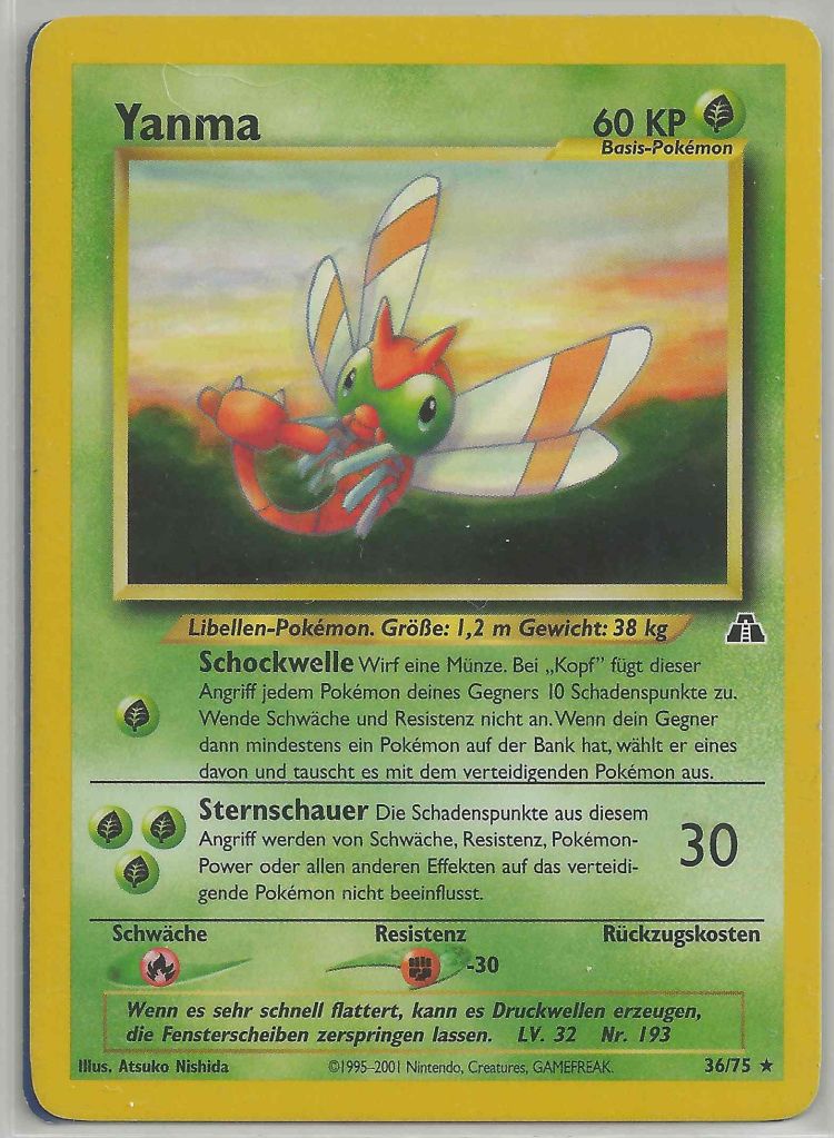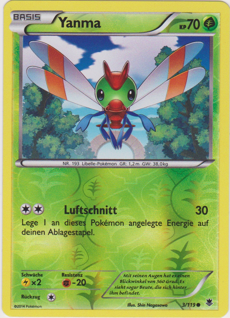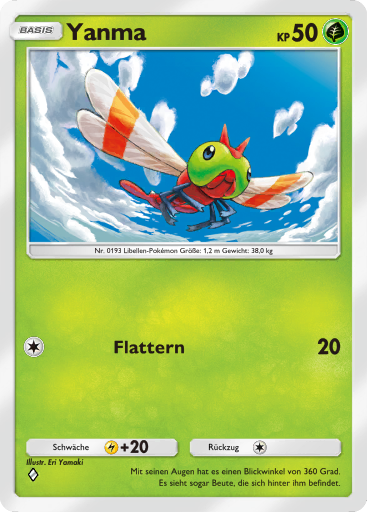 - AS Yanma hat einen Blickwinkel von 360 Grad, ohne die Augen bewegen zu müssen. Es ist ein großartiger Flieger und geübt darin, plötzlich anzuhalten oder Wendemanöver hinzulegen. So kann es sich blitzschnell auf Beute stürzen.