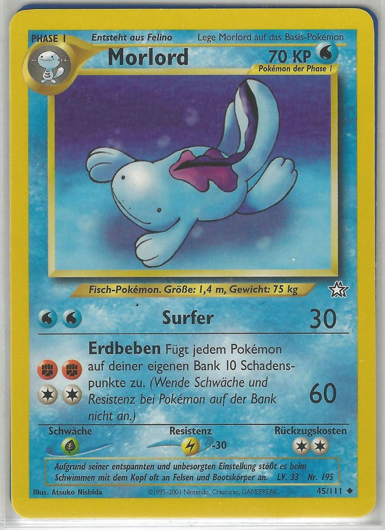 - G Dieses genügsame Pokémon ist sehr umgänglich. Beim Schwimmen stößt es immer wieder gegen Schiffe.