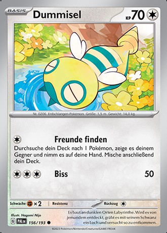 - GO Dummisel hat einen Bohrer als Schweif. Diesen benutzt es, um sich rückwärts in den Boden einzugraben. Dieses Pokémon baut seinen Nestkomplex tief unter der Erdoberfläche auf.
