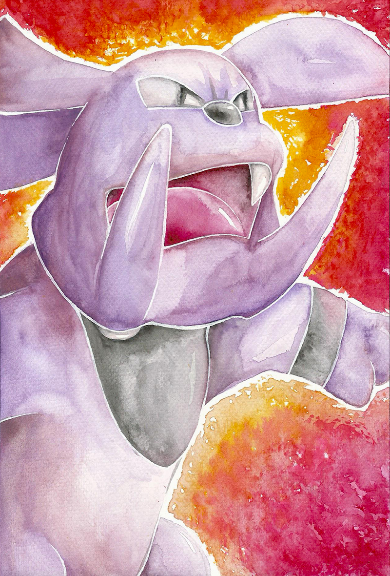 - K Es kann fast jedes Pokémon vertreiben, indem es sein Maul weit öffnet und seine scharfen Reißzähne zeigt.