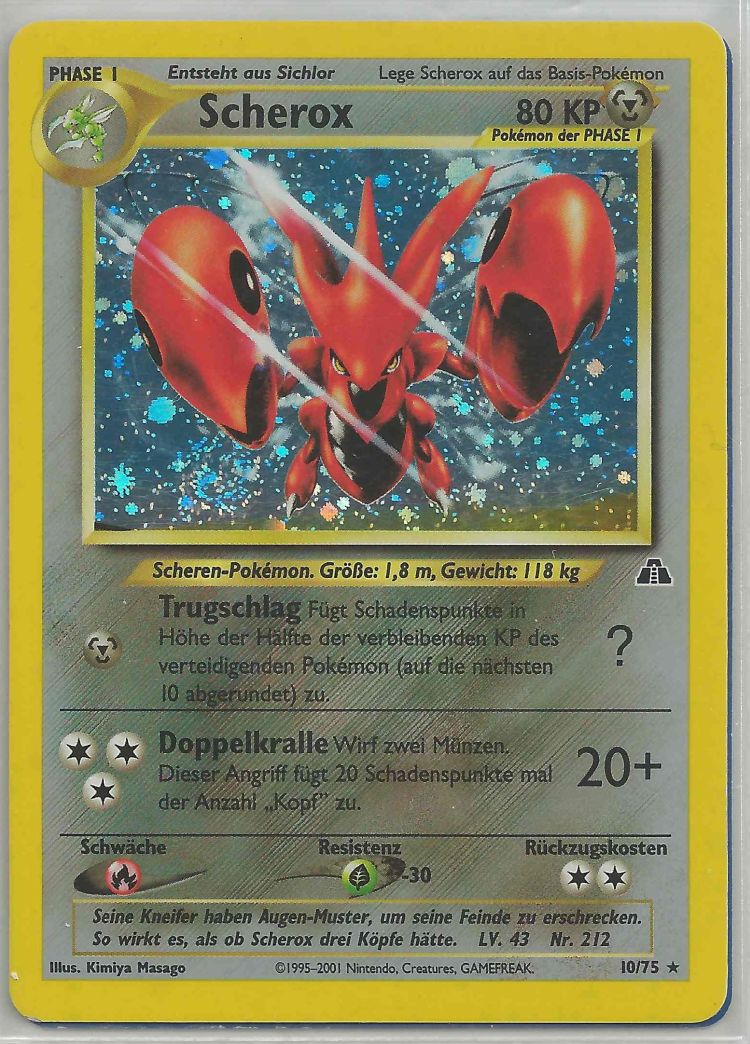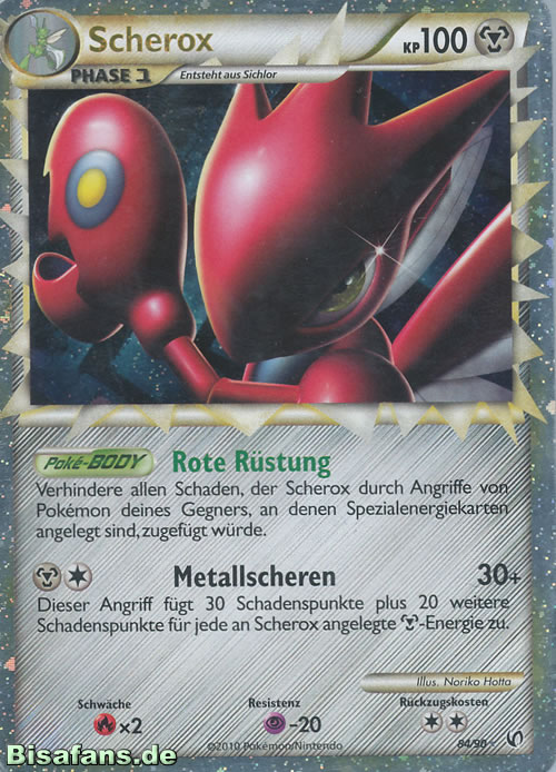 - RS SCHEROX’ Körper ist hart wie Stahl. Normale Angriffe jagen ihm keine Angst ein. Dieses POKéMON schlägt mit den Flügeln, um seine Körpertemperatur zu regulieren.