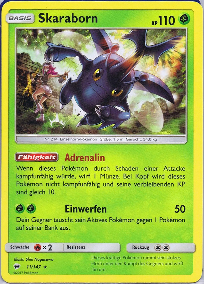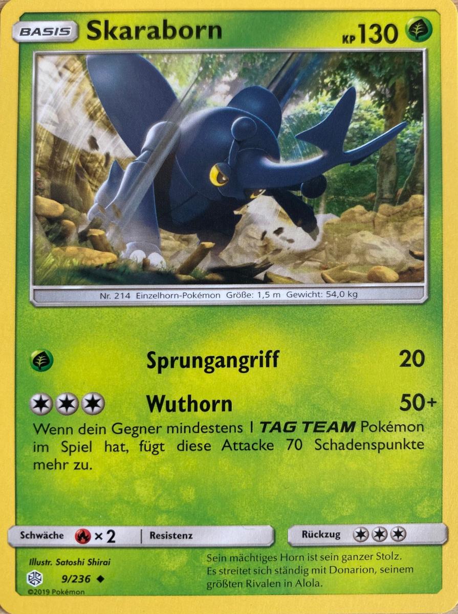 - NPS Skaraborn verfügt über gewaltige Stärke und kann große Gegner mit Leichtigkeit wegschleudern. Für gewöhnlich ist es jedoch sehr sanftmütig und teilt sogar seinen Baumsaft mit anderen Pokémon.