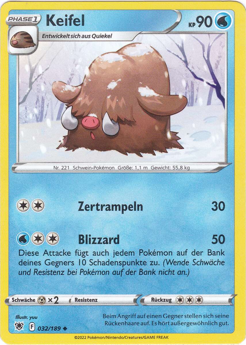 - AS Keifel hat ein dichtes Fell aus langen Haaren. Dadurch ist es gegen eisige Kälte gewappnet. Dieses Pokémon benutzt seine Stoßzähne, um an Nahrung zu gelangen, die unter dem Eis eingeschlossen ist.