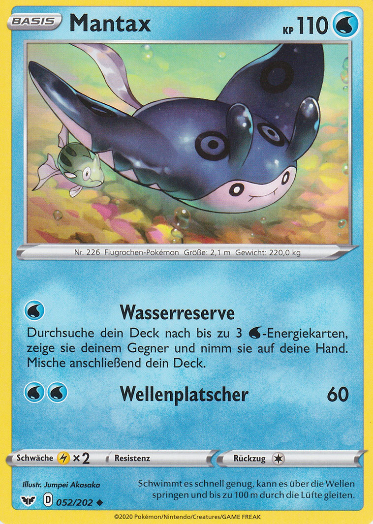 - AS An schönen Tagen sieht man Scharen von Mantax elegant über die Wellen des Ozeans springen. Durch Remoraid, die an ihm haften und es begleiten, fühlt sich dieses Pokémon nicht belästigt.